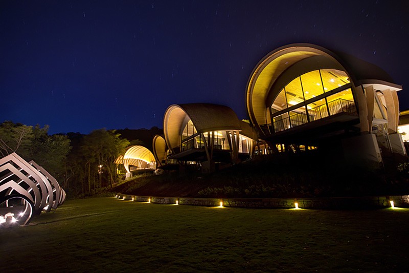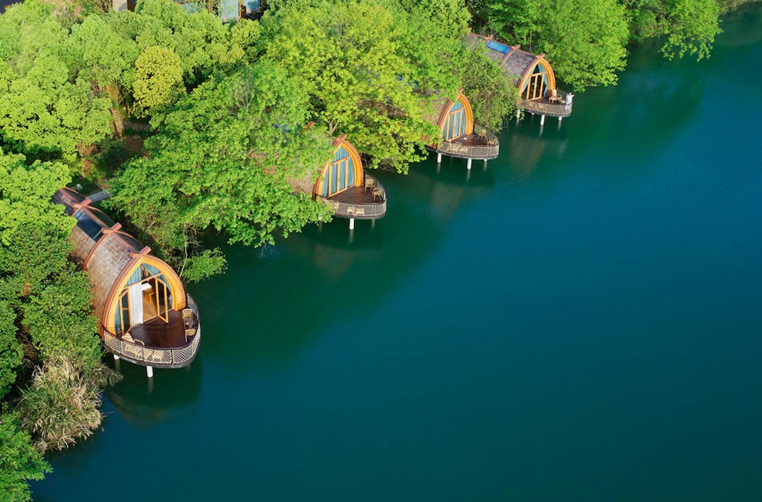 这个度假木屋酒店参考的是虫茧的概念,运用木主材竹子辅材的设计,结合通风光照及空间,有很强的冲击视觉及良好的使用效果。 集合了传统艺术及手工艺,设计出了不同的建筑效果。 这个与我们见过的的中国美术学院设计的富春船屋有异曲同工之妙。
