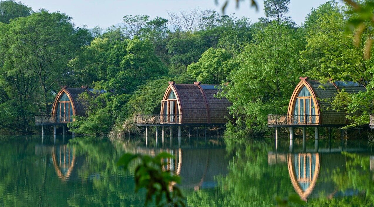这个度假木屋酒店参考的是虫茧的概念,运用木主材竹子辅材的设计,结合通风光照及空间,有很强的冲击视觉及良好的使用效果。 集合了传统艺术及手工艺,设计出了不同的建筑效果。 这个与我们见过的的中国美术学院设计的富春船屋有异曲同工之妙。